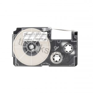 Product on saletheinksupply compatible Casio XR-24AX Sticker Label Tape (24mm White on Clear)Original price was: $16.00.$13.00Current price is: $13.00.