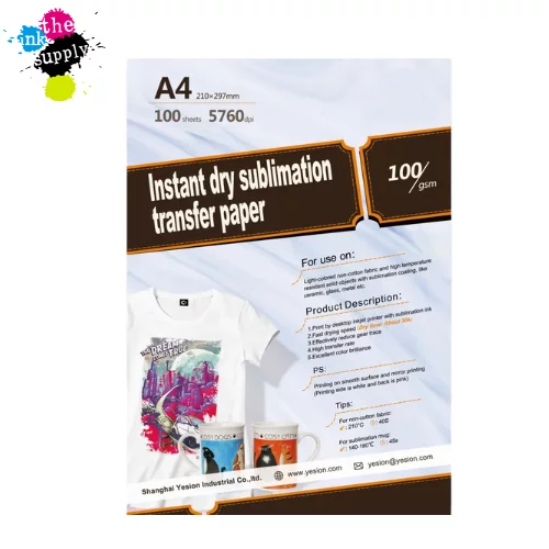 This is a pack of A4 size instant dry sublimation paper. It is packed in 100 pieces per pack. Our sublimation paper is able to dry instantly upon printing, hence it is able to cut down on waiting time.