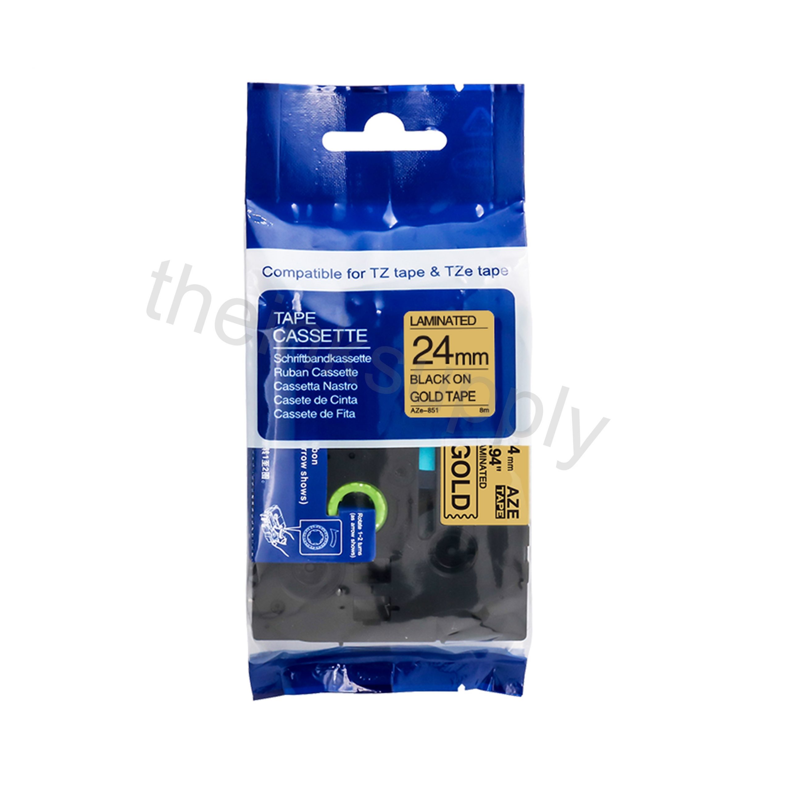 theinksupply compatible Brother Tze-851 Sticker Label Tape (24mm Black on Gold)