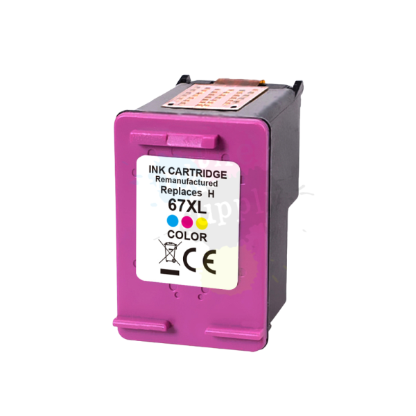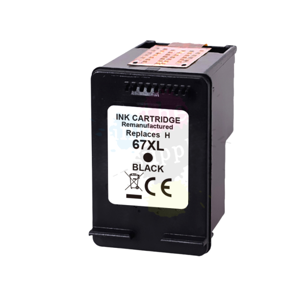This is a remanufactured high-capacity HP-67XL ink cartridge. Remanufactured means this ink cartridge was made by a third-party company and not HP themselves however, this cartridge is fully installed with a new chip, fresh ink and a polished print head, and as amazing as it is, will simply drop into your printer and install perfectly as normal.