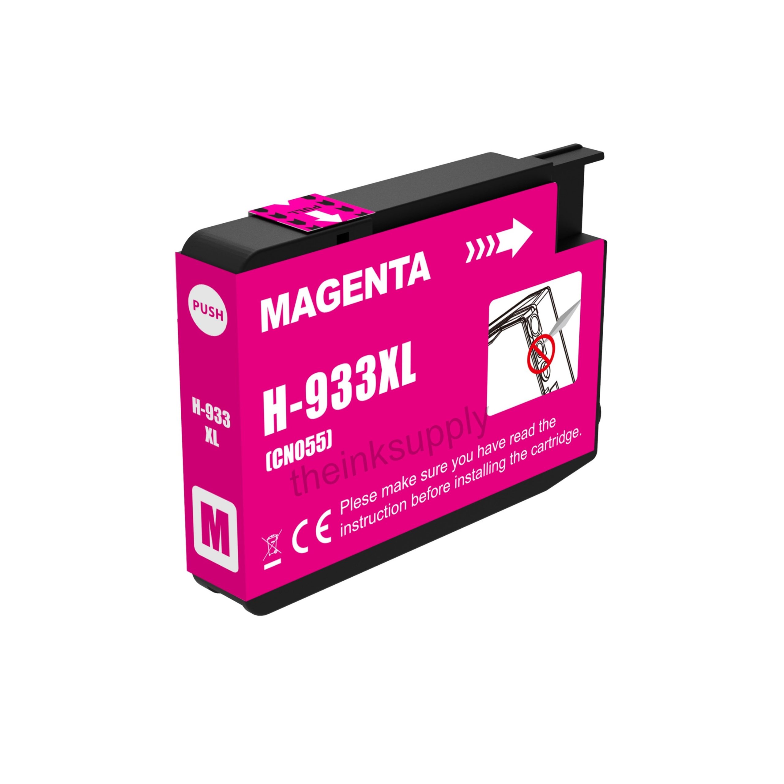 You can replace your empty HP-932XL HP-933XL ink cartridge with the remanufactured HP-932XL HP-933XL cartridge with no hassle at all. Simply open the box and take out the cartridge wrapped in plastic, tear open the plastic, remove the cartridge cap, tear off the pink sticker, then push it into the empty slot until it clicks into place. And that’s it job done. You can use this remanufactured ink cartridge along with any other original or remanufactured HP ink cartridges, no problem at all.