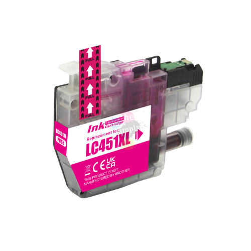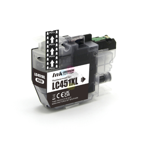 This is a compatible high-capacity Brother LC451XL ink cartridge. Compatible means this ink cartridge was made by a third-party company and not Brother themselves however, this cartridge is fully brand new and installed with a new chip, ink and cartridge, and as amazing as it is, will simply drop into your printer and install perfectly as normal.